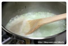 밥덩이를 물에 넣어서 먼저 끓여줍니다. 센불에서~