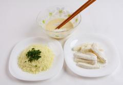 튀김옷 : 밀가루 2큰술. 파슬리다짐 2큰술.튀김가루 1컵 달걀1개