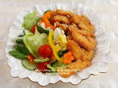 튀김옷 - 케이준가루 2큰술. 밀가루 1/3컵 - 계란물(달걀1개 )- 빵가루 1컵