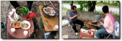 서둘러 이것 저것 준비를 하고 두충나무의 그늘아래 4명이 둘러 앉아 맛있게 구어 먹는데