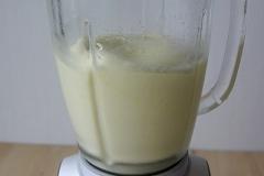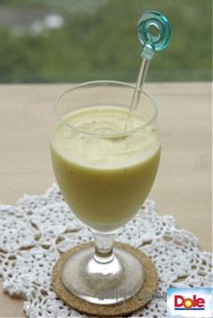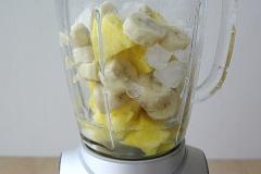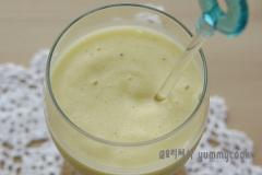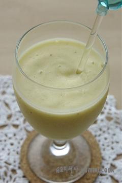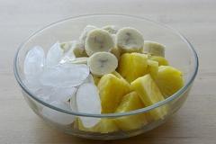 바나나1개 (얼린 것) , 파인 애플 200g, 레몬즙 2큰술, 조각얼음 1컵, 물 1/2컵,