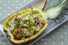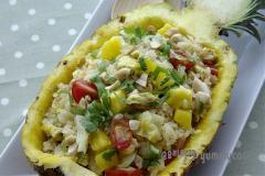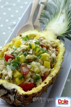 파인애플로 보트를 만들어 볶음밥을 담으니