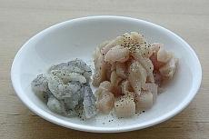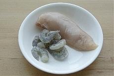 닭가슴살과 새우는 약간 굵게 썰어 소금,후추로 간을 한다