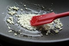 다시 팬에 기름을 두르고 마늘을 충분히 볶아준다