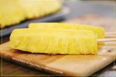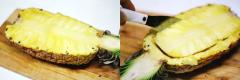 한두시간 전에.. 미리 파인애플을 다듬어 냉장고에 거꾸로 세워 보관합니다.