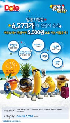 지정된 판매장에서 돌(Dole) 제품을 5000원 이상 구매하시는 고객님들께 응모권을 드립니다.