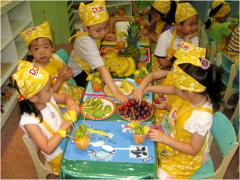 우리 친구들을 위해 온몸을 받쳐 과일과 야채를 골고루 많이 먹으면