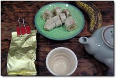 하는 생각에 햇차와 함께 다식으로 갈색으로 변한 Dole 스위티오바나나를 먹어 보았습니다.