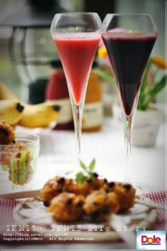 주스잔을 대신해 쉐프앤소믈리에 스파클링 와인용 글라스에 담아봤더니.. 오호.. 더 이뻐보여요.. 날씬하니..