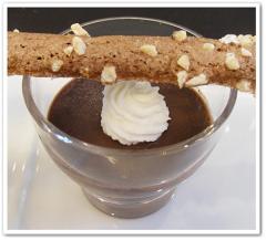 Chocolate pot de crème with milk tea sherbet