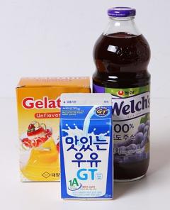 재료 : 포도주스 1컵 ,젤라틴 1큰술 설탕 60g(4큰술) 레몬즙1작은술