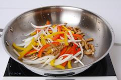 야채를 넣으신 후엔 오래 볶지 마시고 바로 팬을 불위에서 내려 여열로 익혀 주시기 바랍니다.