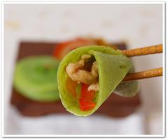고추전 위에 고추잡채를 살짝 올려 한입 싸서 드세요~