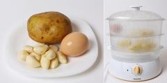 감자와 마늘,달걀을 쪄서 준비합니다.