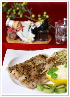 감자와 마늘을 쪄서 갈아 갈릭 포테이토 샐러드를 곁들였습니다.