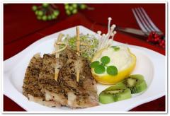 오래 은근한 불로 쪄서 부드러운 돼지고기 허브찜.
