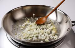 다진 마늘을 넣고 볶다가 양파를 넣어 주세요