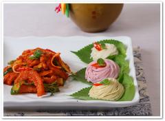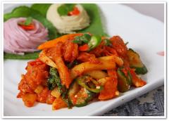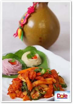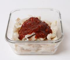양념: 매운고추가루1큰술,고추가루2큰술,식초4큰술,설탕3큰술,꿀(물엿)1큰술