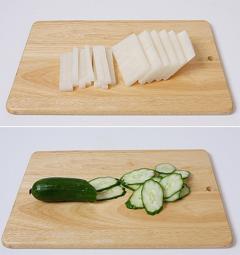 무와 오이는 살짝 절여 손으로 물기를 짜서 준비하시고