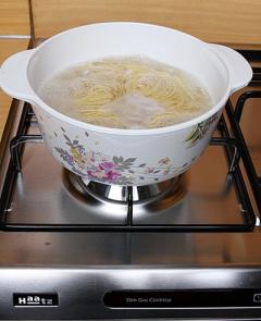 루미낙 내열냄비에 물을 끓여 수연소면을 넣고 끓여 면이 투명해 지면