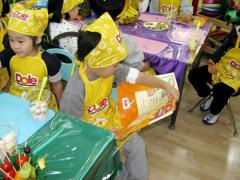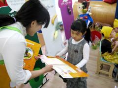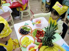 "선생님 저 잘했죠?"라면서 하얀 과일을 찾고 즐거워 하는 우리 친구