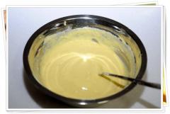 치자물에 얼음넣어 시원한 물로 튀김옷을 만들었습니다..