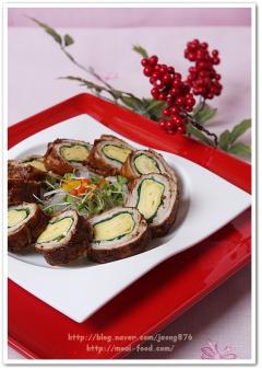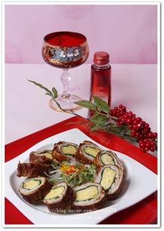 고기가 얇고 안에 있는 달걀말이는 이미 익은거라서