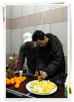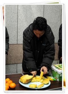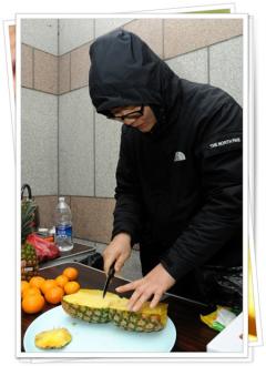 모임 회원님께서 파인애플 손질중인데..