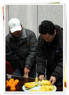 번개모임장소에서 생일?파티하기 위해 파인애플과 귤을 가져갔답니다..