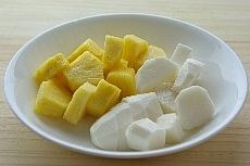 마와 파인애플은 껍질을 벗겨 깍뚝썰기를 한다