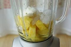 믹서에 마, 파인애플, 얼음물, 레몬즙을 넣고 갈아준다