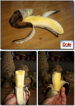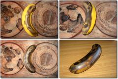 약간 검게 구워진 바나나의 껍질을 벗기자