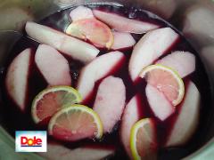 커다란 배 1개를 적당히 몇등분 해서... 포도쥬스 2컵과 레몬 슬라이스 5쪽, 꿀 2큰술을 넣어 졸였어요.