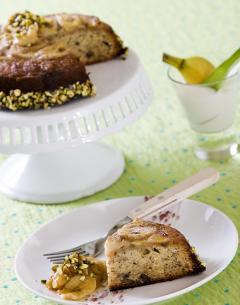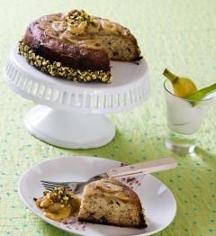 7.케잌을 오븐에서 꺼내 식힌 후 옆면에 녹인 초콜렛을 발라준 후 다진 피스타치오를 붙인다.