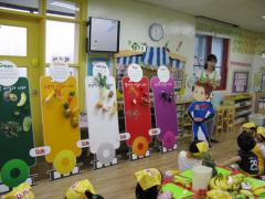 11시 5가지 색깔 과일, 야채 공부 해요.