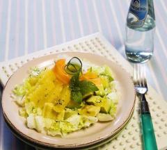 과일샐러드에 경우는 과일이 가지고 있는 물기를 어느정도 제거해야 하는것에 따라 샐러드를 만들떼 과일 or 야채에서 국물이 안나온다. 국물이 나오면 질퍽해질수 있기 때문이다. 아보카도는 완숙할때가 가장 맛이 좋기에 너무 안익었을때는 딱 딱하기에 조금 숙성한다음에 이용하는것이 좋다.