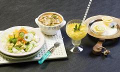소스 : 탄산수500cc, 오렌즈쥬스200cc, 허브류(페퍼민트, 레몬밤)조금, 레몬슬라이스5조각