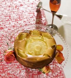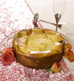 재료: 파인애플(둥근모양5장), 치즈크림250g, 설탕80g, 요플레2개, 생크림200cc, 감자전분가루3큰술, 달걀3개