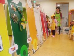 초록 색깔 과일과 야채를 찾고 있는 꼬마요리사