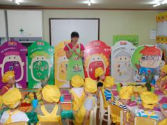 5가지과일과 채소를 먹고 튼튼하게 된 이야기를 듣고 있는 우리 친구들~~