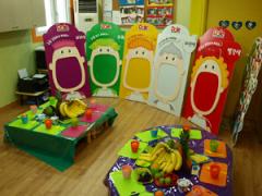이번에는 초록이 입에 초록 색 과일과 채소를 붙이는 우리 친구~