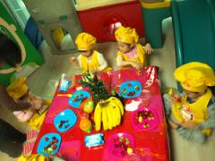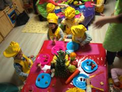 선생님들이 뚝딱 준비한 맛있는 과일과 채소와 오색 친구들도