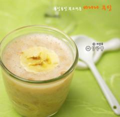 맛있는 바나나 푸딩이랍니다. 바나나는 식이섬유와 탄수화물이 풍부해서 밥대신 먹어도 충분하지요.