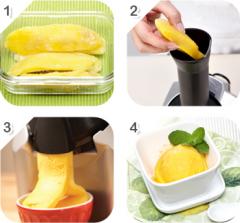 2. 얼린 망고를 yonanas에 넣고 전원 버튼을