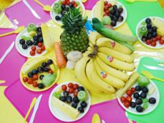 5가지 과일과 채소 친구들을 골고루 꽂아 봐요.