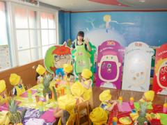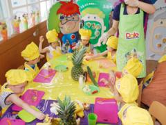 노란 파인애플을 잘라 꽂아 볼까요?