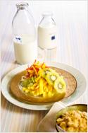 - 파인애플(과육) 300g, 망고 반개, 파파야 반개, 양상치 40g, 파프리카(황, 주황) 반개씩, 오트밀(콘프레이크) 100g, 우유400cc, 꿀 1~2큰술, 그린키위 1개