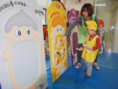선생님께 과일박사 수료증을 받고 좋아 하는 우리 친구