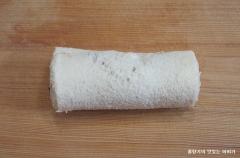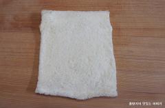 식빵은 가장자리를 제거하고 밀대로 얇게 밀어줍니다.