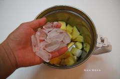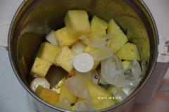 이렇게 파인애플, 마, 얼음을 믹서기 통에 넣고